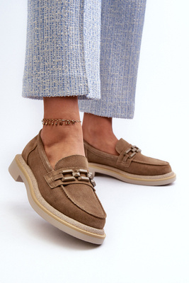 Női velúr cipők lapos sarokkal és D&A TW101 barna díszítéssel