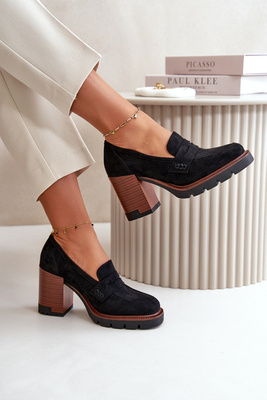Női magas sarkú pumpák platformmal fekete Eco-velúr Vinceza 58105 színben