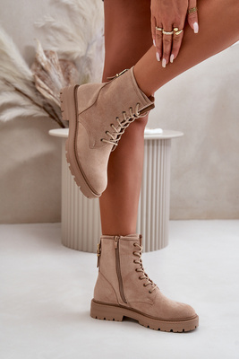 Női szigetelt munkaboka csizma cipzárral Eco Suede bézs Mardia