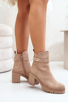Női sarkú Eco velúr csizma szigetelt bézs Laonora cipzárral