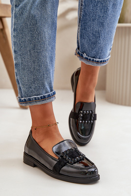 Lakkozott női mokaszin díszítéssel Fekete Vinceza 58389