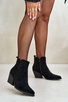 Szigetelt Cowboy Bokacsizma Eco Suede Fekete Virtris cipzárral
