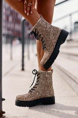 Szigetelt női munkáscsizma arany Liatheine flitterekkel díszítve