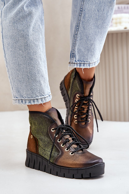 Bőr Bokacipők Platformon És Sarokkal Maciejka 06702-09 Zöld-Arany