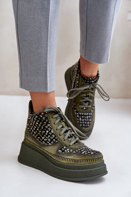 Bőr Bokapántos Csizma Platformon És Sarokkal Maciejka 06759-09 Zöld