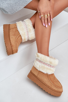Női Hócsizmák Platformon Szőrrel És Mintával Camel Deepanti