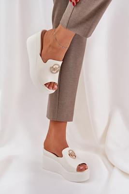 Platformos És Sarokos Szandálok Díszítéssel Fehér Nanessia