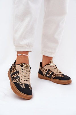 Női Sneakers Eko Bőrből Leopárd Fekete Satylies