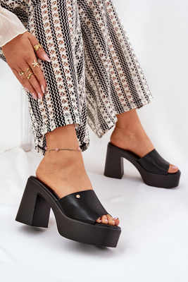 Női Eko Bőrből Készült Papucsok Tüskén És Platformon Fekete Tamirella