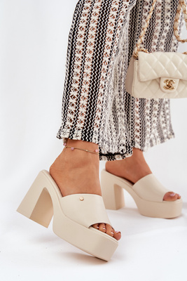 Női Eko Bőrből Készült Sarokkal És Platformmal Rózsaszín Bézs Tamirella