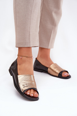 Bőr Elegáns Balerinák Nyitott Orral Zazoo 1865 Arany-Fekete