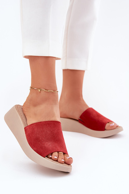 Női Velúr Magas Sarkú Szandál Panto Fino Piros RR267040