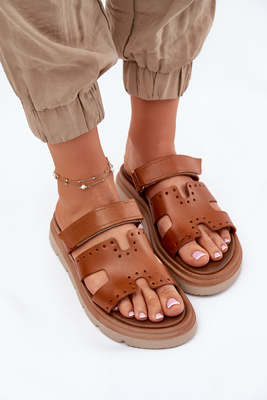 Női Szandálok Természetes Bőrből Platformon Barna Zazoo 40440