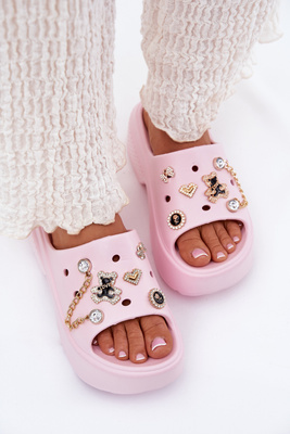 Női Habpapucs Masszív Platformon Arany Díszítéssel Rózsaszín Ivoriel