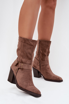 Női Szigetelt Csizmák Sarkon Pántokkal És Dekoratív Részlettel Barna Neria