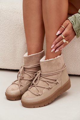 Női téli csizmák kötőfűzővel bézs Rebekah