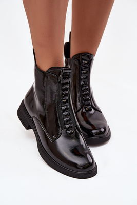 Lakkozott női boka csizma valódi bőrből D&A MR52-108 Fekete
