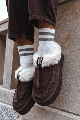 Női téli csizmák szőrös felsővel a platformon csokoládé Rosmira