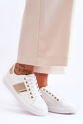 Klasszikus sportcipő áttört mintával, fehér-arany boldogabb