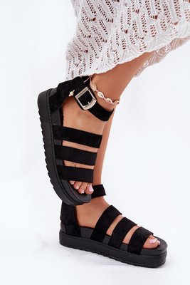 Női Szandál Lapos Sarokkal Eko Bőrből Fekete Dereka