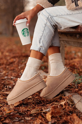 Hócsizmák platformon báránybőr sötétbézs Mesirra