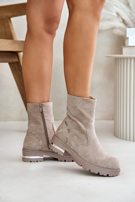Velúr csizma kivágásokkal Bézs Klarissa