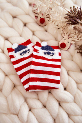 +4Ifjúsági csíkos zokni Medvével Piros és Fehér