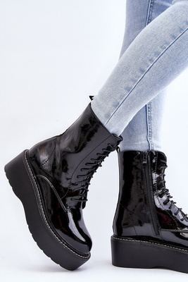 Női lakkbőr csizma vaskos fekete Movana talppal