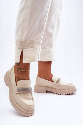 Női platform mokaszinok díszítéssel bézs Ameg