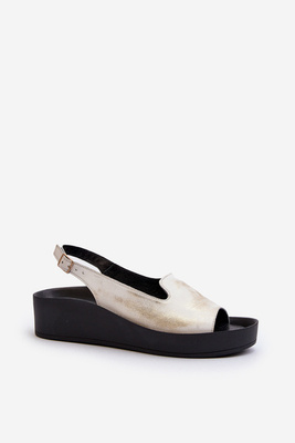 Női bőr szandál vastag talpon, arany Distressed Zazoo 2893
