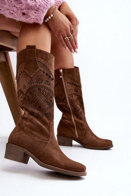 Zazoo 4043 Velúr, alacsony sarkú csizma, barna fűzéssel