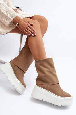 Zazoo 3410 velúr női csizma Chunky Platform bézs színű