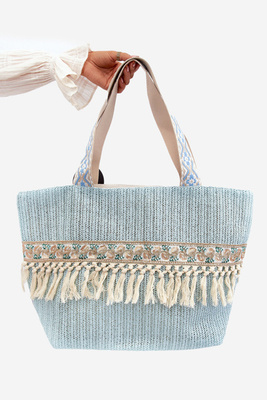 Szőtt nagy strandtáska bojtokkal, kék Missalori