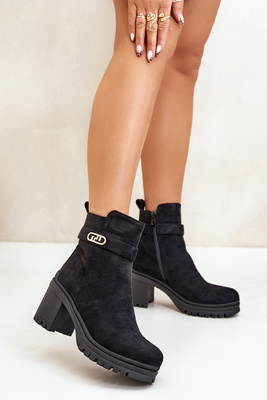 Női sarkú csizma Eco Suede szigetelt cipzáras fekete Laonora