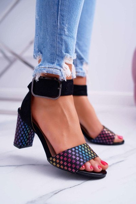 Női tűsarkú szandál színes sarkú fekete Niente