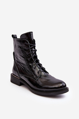 Kényelmes lakkozott szigetelt csizma Fekete Lemar Revin