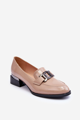 Lakkozott mokaszin sarkú cipő Bézs Sakina