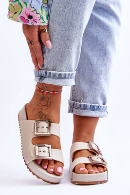 +3Női szandál dekoratív kagylóval Fehér és bézs Verdem