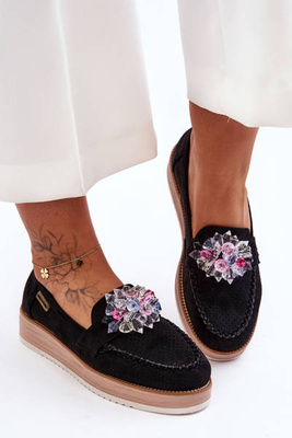 Stílusos velúr mokaszin fekete Delima díszítéssel
