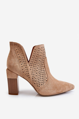 Áttört velúr magassarkú csizma Világos bézs Leanna
