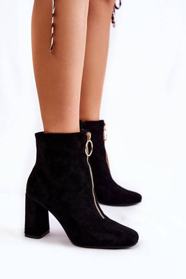 Velúr csizma, magas sarkú, dekoratív cipzárral, fekete Lisette