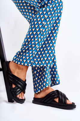 Bőr női papucs magassarkún, rózsaszín Calinda díszítéssel