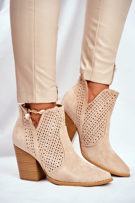 Női tűsarkú csizma velúr áttört világos bézs árnyalatú