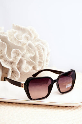 Klasszikus női napszemüveg dekoratív részletekkel UV400 fekete-barna