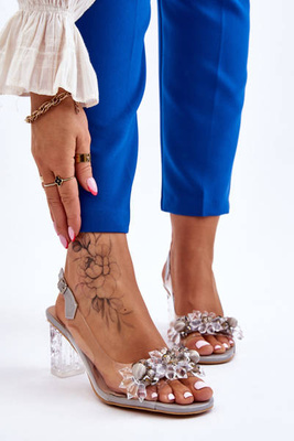 Divatos szandál gyöngyökkel, szürke terasz