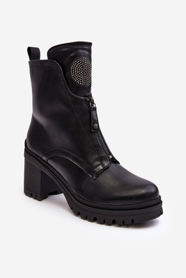 Női magassarkú bőrcsizma Fekete Lemar Danel