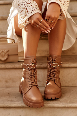 Női bőrcsizma masszív platformon, sötétbézs Savira