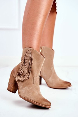 Női csizmák magas sarkú bézs színű meliori díszítéssel