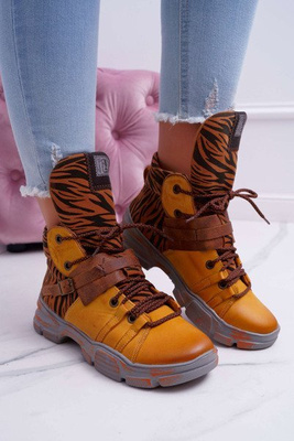Női bőrcsizma csizma csizma Maciejka sárga 04218