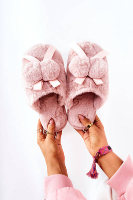 Pūkuotos šlepetės su pompomis Pink Pamppy
